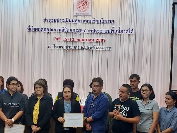เมื่อวันที่ 13 พฤษภาคม 2567 ที่ โรงแรมปุระนคร จ.นครศรีธรรมราช ขบวนการสร้างเสริมสุขภาพประชาชนภาคใต้ ร่วมกับ สภาประชาชนภาคใต้ คณะกรรมการประสานงานองค์กรพัฒนาเอกชนภาคใต้ เครือข่ายสภาองค์กรชุมชนภาคใต้ เครือข่ายรักษ์พะโต๊ะ-ระนอง เครือข่าย save นาบอน ศูนย์สร้างจิตสำนึกนิเวศน์วิทยา เครือข่ายองค์กรงดเหล้าภาคใต้ตอนบน – ตอนล่าง เครือข่ายชาวเลอันดามัน สมาคมประชาสังคมพังงาแห่งความสุข เครือข่ายประมงพื้นบ้านภาคใต้ เครือข่ายยุวชนสร้างสรรค์สุราษฎร์ธานี เครือข่ายผู้หญิงเพื่อสุขภาพ เครือข่ายการเปลี่ยนผ่านพลังงานอย่างเป็นธรรม ขบวนองค์กรชุมชนจังหวัดนครศรีธรรมราช จัดประชุมระดมความคิดเห็นและประเมินผลกระทบเชิงนโยบายที่ส่งผลต่อสุขภาพประชาชนในพื้นที่ภาคใต้
