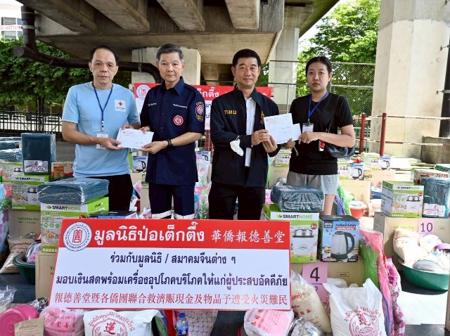 มูลนิธิป่อเต็กตึ๊ง มอบเงินเครื่องอุปโภคบริโภค บรรเทาทุกข์ผู้ประสบอัคคีภัยชุมชนบ้านครัวใต้ เขตปทุมวัน กรุงเทพฯ