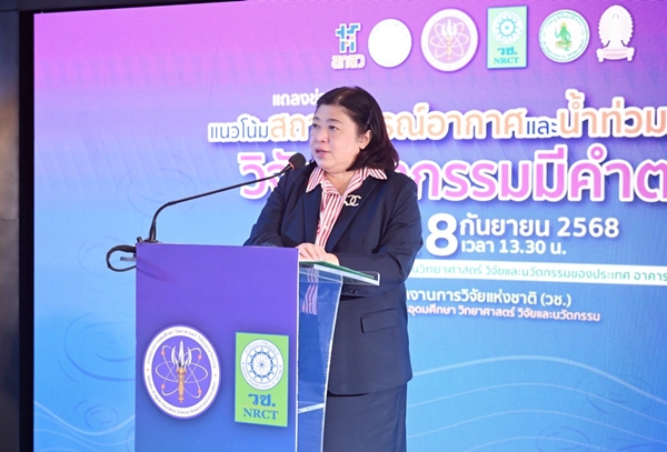 วันที่ 28 กันยายน 2568 สำนักงานการวิจัยแห่งชาติ(วช.) กระทรวงการอุดมศึกษา วิทยาศาสตร์ วิจัยและนวัตกรรม ร่วมกับเครือข่ายวิจัย ประกอบด้วย จุฬาลงกรณ์มหาวิทยาลัย มหาวิทยาลัยเกษตรศาสตร์ และกรมอุตุนิยมวิทยา จัดกิจกรรมแถลงข่าว “แนวโน้มสถานการณ์อากาศและน้ำท่วมในภาคกลาง วิจัยนวัตกรรมมีคำตอบ” โดย ดร.วิภารัตน์ ดีอ่อง ผู้อำนวยการสำนักงานการวิจัยแห่งชาติ เป็นประธาน ณ ศูนย์ข้อมูลสารสนเทศกลางด้านวิทยาศาสตร์ วิจัยและนวัตกรรมของประเทศ วช.