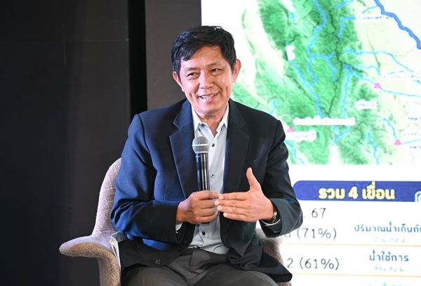 ประเด็น “สถานการณ์และแนวโน้มน้ำท่า” โดย ผู้ช่วยศาสตราจารย์ ดร.ไชยาพงษ์ เทพประสิทธิ์ มหาวิทยาลัยเกษตรศาสตร์ เพิ่มเติมในส่วนสถานการณ์น้ำท่า เนื่องจากพายุก่อนหน้าทำให้ปริมาณน้ำกักเก็บ และน้ำในลำน้ำมีปริมาณมากกว่าร้อยละ 80 จึงจำเป็นต้องเพิ่มการระบายน้ำ แต่ก็มีแนวโน้มลดลง เนื่องจากปริมาณน้ำไหลเข้ายังอยู่ในระบบที่ควบคุมได้ ซึ่งผลกระทบที่เกิดขึ้นจะอยู่ในบริเวณพื้นที่ต่ำ และพื้นที่นอกคันกั้นน้ำ ซึ่งช่วงนี้น้ำทะเลยังไม่หนุนสูง จึงอยู่ในระดับที่จัดการได้