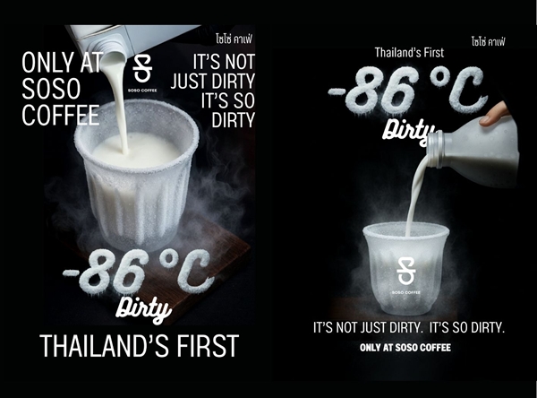 SoSo Coffee คาเฟ่พรีเมียมสัญชาติไทย ภายใต้การบริหารของ บริษัท โบเบน แบรนด์ เมเนจเมนท์ จำกัด ประกาศเปิดตัวเมนูซิกเนเจอร์ “Dirty Coffee -86°C” อย่างเป็นทางการ จัดได้ว่าเป็น “Thailand’s First -86°C Dirty”  ในประเทศไทย ที่กาแฟร้อนถูกเสิร์ฟใน “แก้วเย็นติดลบ” (-86°C) กลายเป็นกระแสแรงในโลกออนไลน์ จนมียอดชมคลิปบน TikTok ทะลุ 8.79 ล้านครั้ง และติดอันดับ “3 คำฮิตยอดค้นหาในกรุงเทพฯ” ภายในเวลาไม่นาน พร้อมยกระดับ Café Economy ของคนรุ่นใหม่