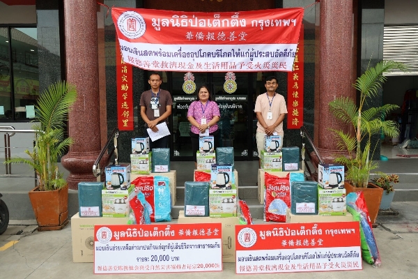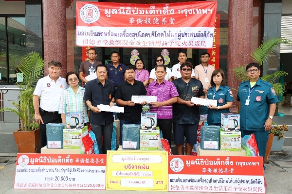มูลนิธิป่อเต็กตึ๊ง ลงพื้นที่เยียวยาผู้ประสบอัคคีภัย บริเวณตำบลท่าประดู่ อำเภอเมือง จังหวัดระยอง พร้อมมอบเงินช่วยเหลือค่าฌาปนกิจแก่ครอบครัวผู้เสียชีวิตรวม 7 ราย