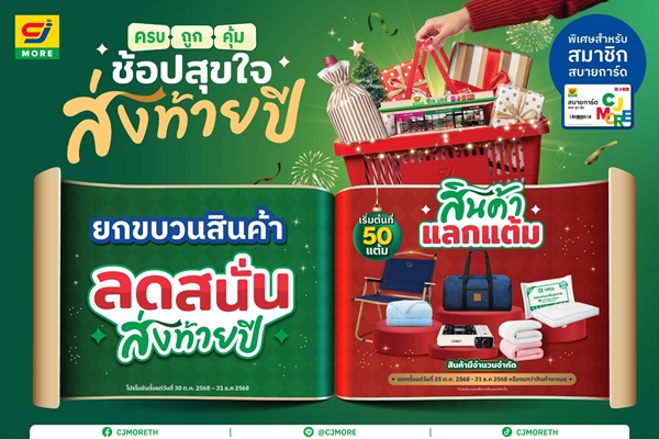 CJ MORE ส่งแคมเปญ “ซีเจ มอร์ ครบ ถูก คุ้ม ช้อปสุขใจ ส่งท้ายปี” เติมความสุขทุกสไตล์รับช่วงเทศกาลปลายปี ให้ลูกค้าสมาชิกสบายการ์ดทั่วประเทศ ยกขบวนโปรโมชันสุดคุ้มกับสินค้าลดสนั่น และมอบของขวัญส่งท้ายปีกับสินค้าแลกแต้มสุดคุ้ม ตั้งแต่วันที่ 25 ตุลาคม – 31 ธันวาคม 2568