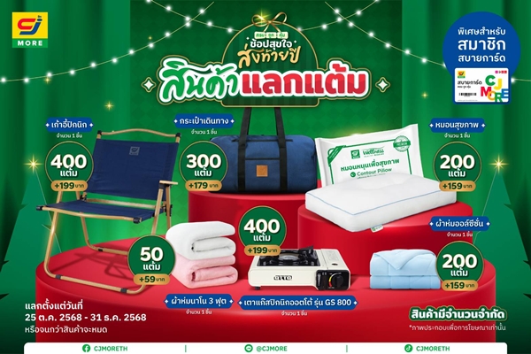 ซีเจ มอร์ (CJ MORE) เดินหน้าส่งต่อความสุขช่วงปลายปีด้วยแคมเปญ “ซีเจ มอร์ ครบ ถูก คุ้ม ช้อปสุขใจ ส่งท้ายปี” ตั้งแต่วันที่ 25 ตุลาคม – 31 ธันวาคม 2568 เพื่อสร้างโมเมนต์แห่งรอยยิ้มให้ลูกค้าสมาชิกสบายการ์ดทุกเพศทุกวัย และทุกคนในครอบครัว ผ่านโปรโมชันสินค้าหมุนเวียนรายสัปดาห์ และสินค้าแลกแต้มสุดคุ้ม ที่ตอบโจทย์ความสุขในทุกมิติ ไม่ว่าจะสุขเมื่อได้ออกเดินทางท่องเที่ยว สุขเมื่อได้กลับบ้านใช้เวลากับคนที่รัก สุขเมื่อได้รวมตัวปาร์ตี้กับเพื่อนฝูง หรือสุขเมื่อได้ให้ของขวัญแก่คนพิเศษ