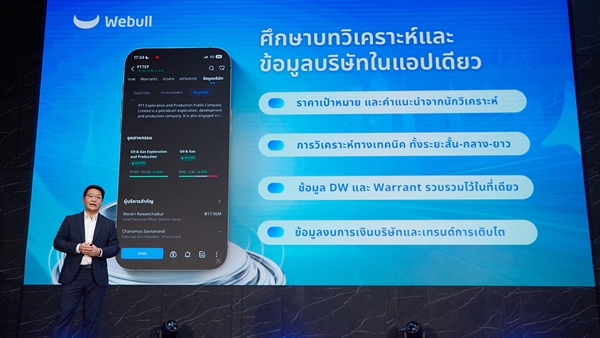สำหรับผู้ลงทุนที่ต้องการสัมผัสประสบการณ์การลงทุนระดับสูง หรือต้องการเข้าถึงการลงทุนแบบครบทุกมิติ ผ่านฟีเชอร์สุดพิเศษต่าง ๆ ที่ถูกออกแบบมาเพื่อนักลงทุนไทย สำหรับการเทรดหุ้นสหรัฐฯ หุ้นไทย กองทุน ETFs หรือสัญญาออปชัน ก็สามารถดาวน์โหลดแอปพลิเคชัน Webull Thailand เพื่อเข้าถึงแพลตฟอร์มการลงทุนระดับโลกได้แล้ววันนี้ ทั้งบน App Store และ Play Store โดยศึกษาข้อมูลเพิ่มเติมได้ที่เว็บไซต์ www.webull.co.th และเพจ www.facebook.com/WebullThai