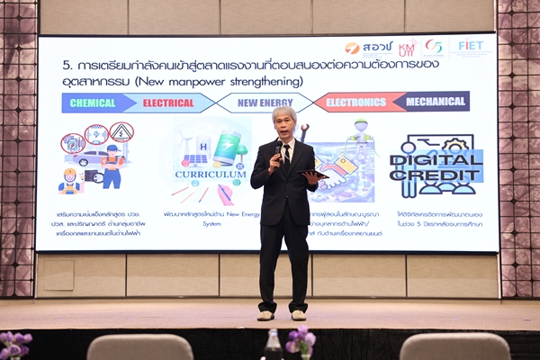 ดร.สิริพร กล่าวว่า พิธีลงนามในครั้งนี้ เป็นจุดเริ่มต้นของความร่วมมือระยะเวลา 5 ปี ที่มีความหมายอย่างยิ่งต่อการขับเคลื่อนประเทศ เพราะเกิดจากพลังของภาครัฐ ภาคการศึกษา และภาคเอกชน ที่ร่วมผนึกกำลัง กันอย่างเป็นระบบและเป็นรูปธรรม เพื่อตอบโจทย์อนาคตของประเทศไทยในอุตสาหกรรมยานยนต์ไฟฟ้า ความร่วมมือครั้งนี้มีเป้าหมายในการพัฒนากำลังคนให้พร้อมรับต่อการเปลี่ยนแปลงของโลก ตั้งแต่การเตรียมบุคลากรรุ่นใหม่ในระบบการศึกษา การยกระดับทักษะของแรงงาน และการพัฒนาศักยภาพบุคลากรในสถานประกอบการ ผ่านการร่วมกันออกแบบหลักสูตรทั้งรูปแบบ degree และ non-degree หลักสูตรเฉพาะทาง การฝึกอบรม การฝึกงาน รวมถึงการรับรองมาตรฐานวิชาชีพและมาตรฐานฝีมือแรงงานแห่งชาติ เราจะมุ่งเน้นการ Upskill — Reskill — และ Newskill เพื่อสร้างระบบการเรียนรู้ที่ไม่เพียงสอดรับกับความต้องการ ของอุตสาหกรรม แต่ยังนำพาให้ประเทศไทยเป็นผู้นำในยุคยานยนต์ไฟฟ้าอย่างแท้จริง สอวช. มีบทบาทสำคัญในการเชื่อมร้อยพลังของทุกภาคส่วน ทั้งการอุดมศึกษาและภาคเอกชน รวมถึงการสนับสนุนนโยบายและการให้ทุนพัฒนาบุคลากรที่จำเป็น เพื่อให้การขับเคลื่อนในครั้งนี้เกิดผลได้อย่างเป็นรูปธรรม