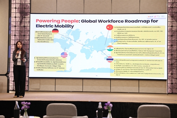 นางเพ็ญนภา กล่าวว่า ความร่วมมือด้านการพัฒนากำลังคนยานยนต์ไฟฟ้าอย่างครบวงจรในครั้งนี้ คือการร่วมกัน “สร้างคน สร้างอนาคต” จากพลังของภาครัฐ ภาคการศึกษา และภาคเอกชน ที่ผสานกันอย่างเข้มแข็ง เพื่อพัฒนาบุคลากรตลอดทั้งห่วงโซ่คุณค่าของอุตสาหกรรม ตั้งแต่การเรียนรู้ การวิจัย ไปจนถึงการสร้างกำลังคนที่มีสมรรถนะสูง พร้อมรับการเปลี่ยนแปลงเทคโนโลยีที่รวดเร็วของโลกยานยนต์ไฟฟ้า กระทรวง อว. มีบทบาทสำคัญในการยกระดับองค์ความรู้ วิทยาศาสตร์ การวิจัยและนวัตกรรม เพื่อขับเคลื่อนระบบการเรียนรู้รูปแบบใหม่ ที่ผสานประสบการณ์จริงจากภาคอุตสาหกรรมเข้ากับการเรียนในสถาบันการศึกษา ตามแนวทาง “สร้างคน – สร้างงาน – สร้างนวัตกรรม” อย่างแท้จริง ความร่วมมือครั้งนี้ คือรากฐานสำคัญในการผลักดันประเทศไทยสู่การเป็นศูนย์กลางยานยนต์ไฟฟ้าระดับภูมิภาค มุ่งสู่เป้าหมาย EV30@30 และร่วมสร้างอนาคต ที่ยั่งยืนด้วยการลดการปล่อยก๊าซเรือนกระจกสุทธิเป็นศูนย์ ภายในปี พ.ศ. 2593 (Net Zero 2050) เพื่อให้ประเทศไทยก้าวสู่การพัฒนาเศรษฐกิจสมัยใหม่ ด้วย “คนไทย” ที่มีศักยภาพพร้อมแข่งขันบนเวทีโลก