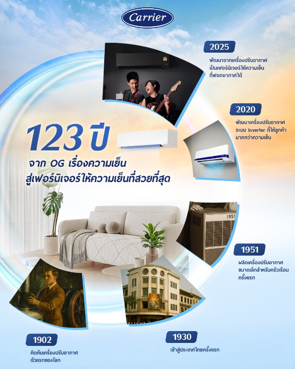 แคเรียร์ ผู้บุกเบิกตลาดเครื่องปรับอากาศระดับโลก เดินหน้าสร้างการรับรู้ใหม่ในตลาดไทย ด้วยแคมเปญ “ใครคิดไม่ถึง แคเรียร์คิดถึง” ยกระดับแอร์จากเครื่องใช้ไฟฟ้าธรรมดา สู่แอร์เฟอร์นิเจอร์ที่เติมเต็มสไตล์การตกแต่งบ้าน ตอกย้ำความเป็นผู้นำนวัตกรรมด้านดีไซน์ที่ตอบโจทย์ไลฟ์สไตล์คนยุคใหม่