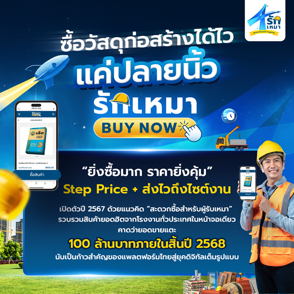 - เปิดให้บริการรักเหมา EZY ภายใต้สโลแกน จัดซื้อครบ จบทุกไซต์ ทำให้ผู้รับเหมามีผู้ช่วยจัดซื้อในมือถือเครื่องเดียว ออกแบบมาเพื่อให้การสั่งซื้อวัสดุก่อสร้าง “ง่าย เหมือนสั่งกับร้านประจำ” แต่ “ชาญฉลาด และ ครบกว่าเดิมด้วยเทคโนโลยีและ AI” โดยบริการนี้จะช่วยให้ผู้รับเหมากลุ่มที่เริ่มต้นให้สามารถเข้าถึงเทคโนโลยีดิจิทัลได้ง่ายแต่มีประสิทธิภาพสูงสุด