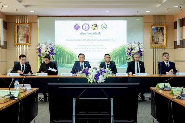 ยุคที่ 5.0 : เป็นการต่อยอดความสำเร็จในฤดูการผลิตปี 2568/2569 นี้ ซึ่งเป็นก้าวต่อไปของอุตสาหกรรมอ้อยและน้ำตาลทรายแบบที่เป็นมิตรกับสิ่งแวดล้อม กระทรวงอุตสาหกรรมได้มีแนวคิดผลักดันมาตรการจ่ายเงินช่วยเหลือตามประสิทธิภาพ และการใช้เทคโนโลยีภาพถ่ายดาวเทียม ตลอดจนการประยุกต์ใช้ข้อมูลด้านอุตุนิยมวิทยา จากแรงกดอากาศและทิศทางลม เพื่อควบคุมการเผาอ้อยได้อย่างมีประสิทธิภาพบนพื้นฐานของการควบคุมการเผา ในเชิงพื้นที่ และการประยุกต์ใช้ข้อมูลด้านวิทยาศาสตร์และเทคโนโลยี และเทคโนโลยีดิจิทัล ดังนั้น กระทรวงอุตสาหกรรม จึงได้มอบหมายให้สำนักงานคณะกรรมอ้อยและน้ำตาลทราย (สอน.) เดินหน้าขับเคลื่อนมาตรการ เพิ่มอ้อยตัดสดลดการเผา สะท้อนให้เห็นถึงความร่วมมือจากทั้งเกษตรกร โรงงานน้ำตาล และหน่วยงานทุกภาคส่วน โดยได้ยกระดับความร่วมมือกับหน่วยงานภาครัฐหลักอย่างต่อเนื่อง โดยเฉพาะอย่างยิ่ง กระทรวงอุตสาหกรรมจึงร่วมกับกระทรวงมหาดไทย (มท.) กระทรวงการอุดมศึกษา วิทยาศาสตร์ วิจัยและนวัตกรรม (อว.) และกระทรวงดิจิทัลเพื่อเศรษฐกิจและสังคม (ดีอี) ซึ่งเป็นที่มาของลงนามความร่วมมือว่าด้วยการควบคุมการเผาอ้อยและพืชไร่ เพื่อป้องกันปัญหาฝุ่นละอองขนาดเล็ก (PM 2.5) ในวันนี้ โดยมีเป้าหมายเพื่อบูรณาการความร่วมมือระหว่างหน่วยงานภาครัฐ