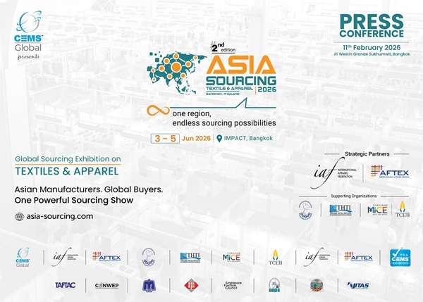 ทั้งนี้งาน 2nd Asia Sourcing Show 2026 (Textiles & Apparel) Global Sourcing Summit 2026 จัดที่ ศูนย์แสดงสินค้าและการประชุมอิมแพ็ค กรุงเทพฯ ประเทศไทย วันที่ 3–5 มิถุนายน 2569 ผู้สนใจสามารถเข้าชมรายละเอียดได้ทาง เว็บไซต์: www.asia-sourcing.com หรือ ติดต่อสอบถาม WhatsApp: +1 212-914-7414 อีเมล: contact@cems-global.com