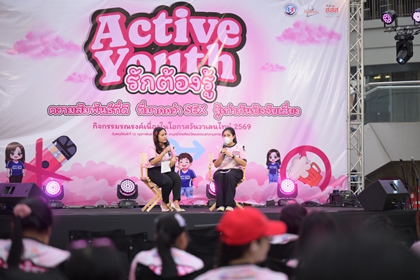 ที่ลานหน้าหอศิลปวัฒนธรรมแห่งกรุงเทพมหานคร เครือข่ายเยาวชนลดปัจจัยเสี่ยง เครือข่ายสร้างเสริมสุขภาพเยาวชน มูลนิธิเด็ก เยาวชน และครอบครัว ร่วมกับสำนักงานกองทุนสนับสนุนการสร้างเสริมสุขภาพ (สสส.) จัดกิจกรรมรณรงค์เนื่องในโอกาสวันวาเลนไทน์ 2569 Active Youth รักต้องรู้…. ความสัมพันธ์ที่ดี ที่มากกว่า SEX รู้เท่าทันปัจจัยเสี่ยง เพื่อรณรงค์ให้เยาวชนมีความรู้ ความเข้าใจ และทัศนคติที่ถูกต้องเกี่ยวกับความรักอย่างเหมาะสม และสามารถตัดสินใจได้อย่างปลอดภัย