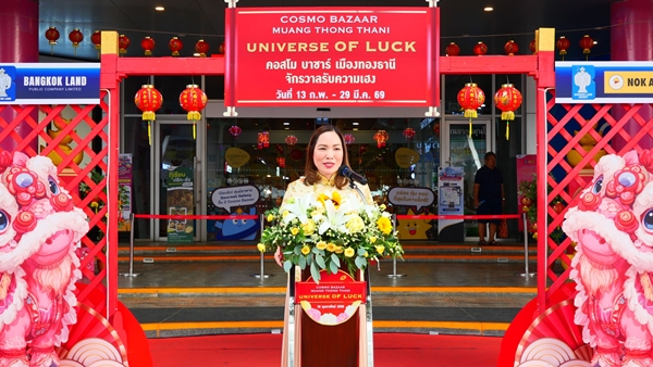 ศูนย์การค้าคอสโม บาซาร์ เมืองทองธานี ร่วมกับสายการบินนกแอร์ จัดงานฉลองเทศกาลตรุษจีนสุดยิ่งใหญ่ภายใต้แนวคิด “COSMO BAZAAR UNIVERSE OF LUCK – จักรวาลรับความเฮง” พร้อมเปิดตัวแคมเปญพิเศษ “Top Spender” มอบบัตรโดยสารเครื่องบินภายในประเทศจากสายการบินนกแอร์ รวม 20 ที่นั่ง ให้กับลูกค้ายอดใช้จ่ายสะสมสูงสุด 10 ท่านแรก ตลอดระยะเวลาแคมเปญ เพื่อร่วมเฉลิมฉลองปีใหม่จีนท่ามกลางบรรยากาศแห่งความเป็นสิริมงคล งานครั้งนี้ผสานเสน่ห์วัฒนธรรมไทย – จีนเข้ากับประสบการณ์ไลฟ์สไตล์และการช้อปปิ้งได้อย่างลงตัว พร้อมกิจกรรมเสริมดวงและโปรโมชั่นมากมาย จัดขึ้นตั้งแต่วันนี้ – 29 มีนาคม 2569 ณ ศูนย์การค้าคอสโม บาซาร์ เมืองทองธานี