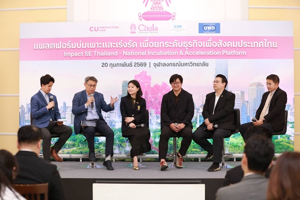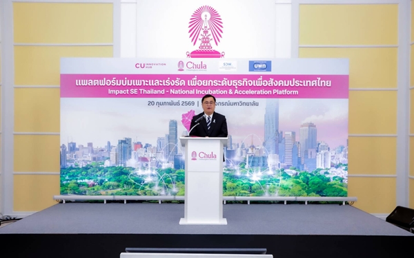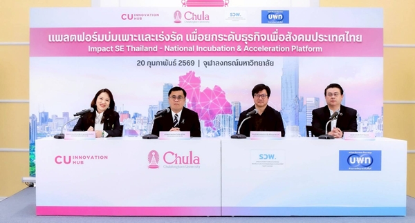 จุฬาลงกรณ์มหาวิทยาลัย ร่วมกับ หน่วยบริหารจัดการทุนด้านการพัฒนาพื้นที่ (บพท.) จัดพิธีแถลงข่าวการจัดตั้ง “แพลตฟอร์มบ่มเพาะและเร่งรัดเพื่อยกระดับธุรกิจเพื่อสังคมไทย (Impact SE Thailand – National Incubation & Acceleration Platform)” อย่างเป็นทางการ ในวันที่ 20 กุมภาพันธ์ 2569 ณ เรือนจุฬานฤมิต จุฬาลงกรณ์มหาวิทยาลัย โดยมีศาสตราจารย์ ดร.วิเลิศ ภูริวัชร อธิการบดีจุฬาลงกรณ์มหาวิทยาลัย เป็นประธานในพิธี พร้อมด้วยศาสตราจารย์ เภสัชกรหญิง ดร.พรอนงค์ อร่ามวิทย์ รองอธิการบดีจุฬาลงกรณ์มหาวิทยาลัย และ รองศาสตราจารย์ ดร.ปุ่น เที่ยงบูรณธรรม รองผู้อำนวยการ ฝ่ายแผนและยุทธศาสตร์องค์กร หน่วยบริหารจัดการทุนด้านการพัฒนาพื้นที่ สำนักงานเร่งรัดการวิจัยและนวัตกรรมเพื่อเพิ่มความสามารถการแข่งขันและการพัฒนาพื้นที่ (องค์การมหาชน) ตลอดจนผู้แทนหน่วยงานภาครัฐ ภาคเอกชน เครือข่ายนักลงทุน ผู้ประกอบการเพื่อสังคม นักวิจัย และภาคประชาสังคมเข้าร่วมงานอย่างคับคั่ง