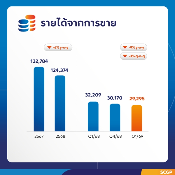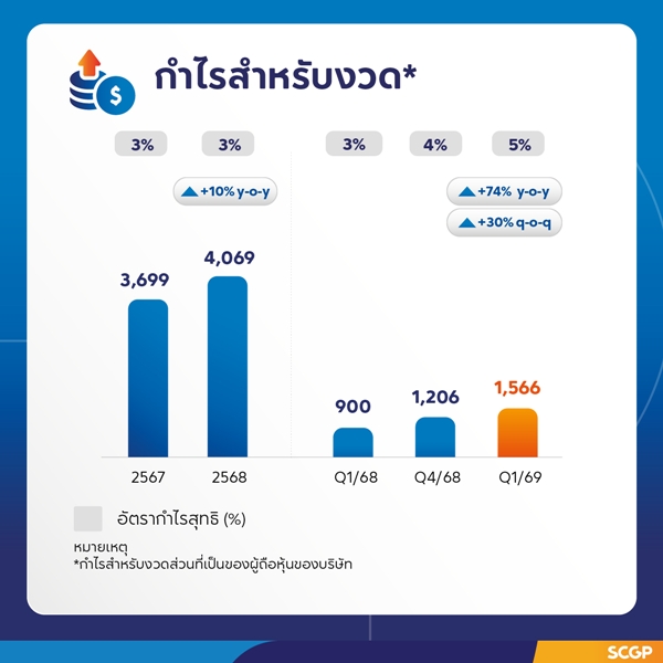 SCGP ประกาศผลประกอบการไตรมาสที่ 1 ปี 2569 กำไรเติบโต จากธุรกิจในอินโดนีเซียที่ฟื้นตัวจากการเพิ่มประสิทธิภาพการดำเนินงานและลดต้นทุน และจากแรงหนุนของการอุปโภคบริโภคในประเทศกลุ่มอาเซียน วางกลยุทธ์เชิงรุกต่อเนื่องในไตรมาสที่ 2 รับมือความผันผวนของเศรษฐกิจโลก เดินหน้าบริหารความต่อเนื่องทางธุรกิจ ควบคู่กับการเพิ่มประสิทธิภาพการผลิตและการปรับการใช้พลังงานอย่างเหมาะสม รวมถึงการนำเสนอโซลูชันเพื่อตอบโจทย์ลูกค้า (Customer Centricity)