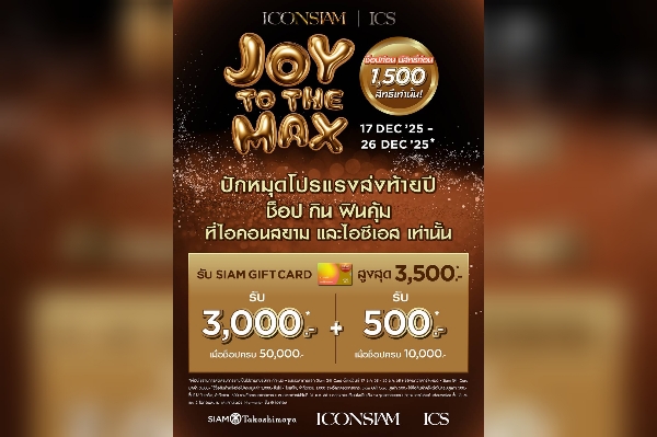 ไอคอนสยาม และไอซีเอส ส่งโปรแรงมอบความสุขปลายปีกับ “JOY TO THE MAX” แจก SIAM GIFT CARD ให้ช็อป กิน ฟิน คุ้ม ทุกวัน